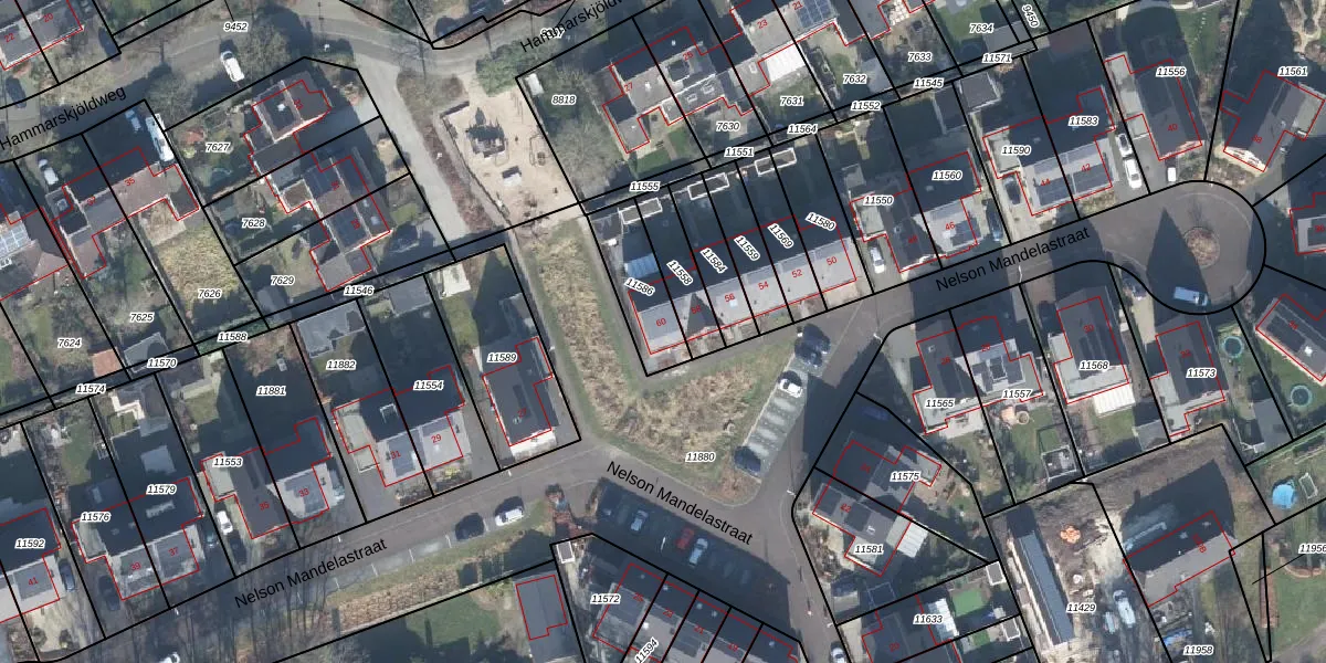 Gebruik de zoekbalk of klik op een perceel voor informatie over de adressen binnen dit perceel.