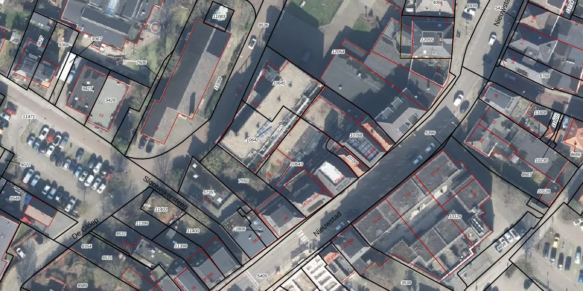 Het perceel waarop Nieuwstad 18-d staat heeft een oppervlakte van 607 m². Dit is een groot perceel. De perceeloppervlakte wordt geregistreerd door het Kadaster. Gedetailleerde informatie over de maten van dit perceel kunt u vinden in het rapport Kadastrale kaart met maatvoering van Nieuwstad 18-d.