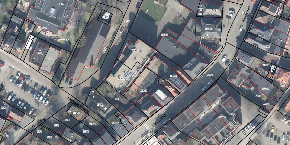 Het perceel waarop Nieuwstad 20-c staat heeft een oppervlakte van 607 m². Dit is een groot perceel. De perceeloppervlakte wordt geregistreerd door het Kadaster. Gedetailleerde informatie over de maten van dit perceel kunt u vinden in het rapport Kadastrale kaart met maatvoering van Nieuwstad 20-c.