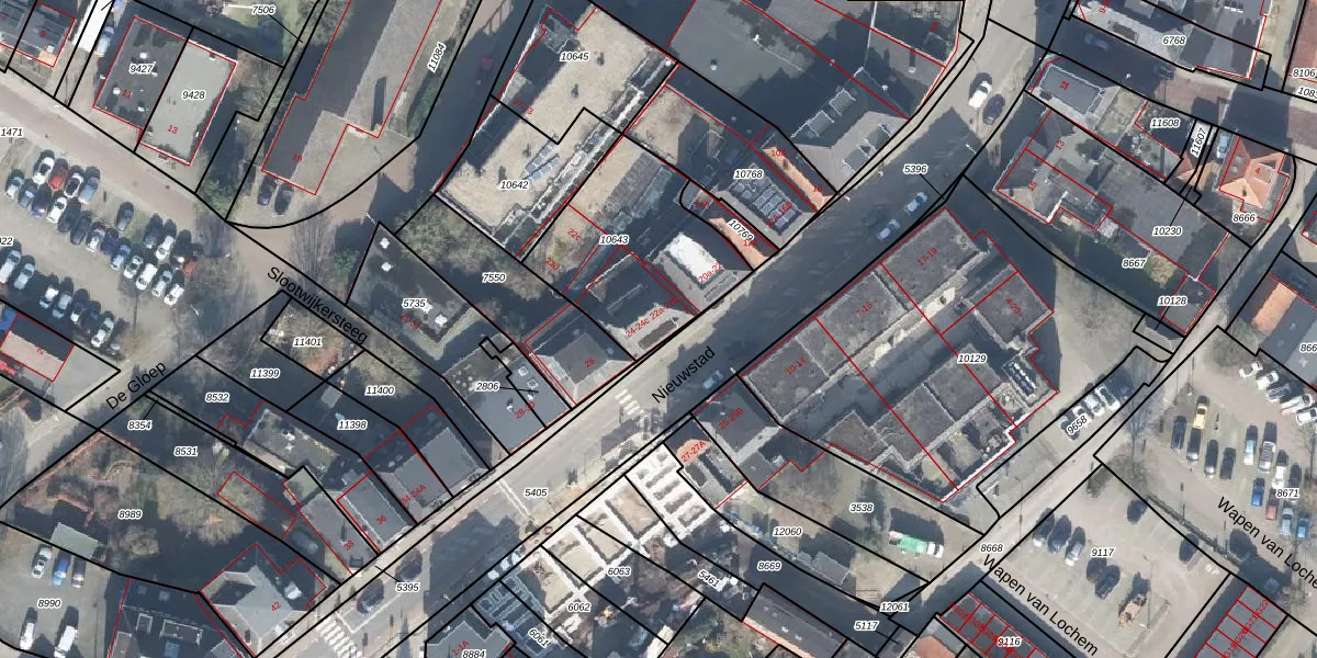 Nieuwstad 22-a is gelegen op kadastraal perceel LCM00B10643. Deze kadastrale aanduiding is uniek en wordt gebruikt door het Kadaster om eigendomsrechten en andere zakelijke rechten vast te leggen. Het perceel maakt onderdeel uit van de kadastrale gemeente Lochem.