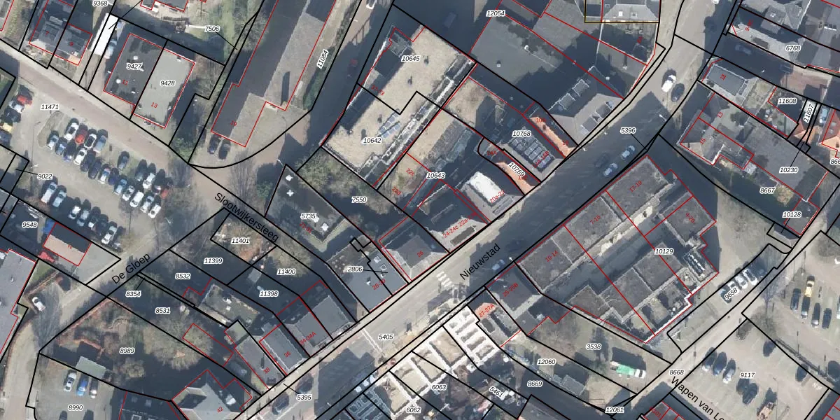 Het perceel waarop Nieuwstad 24-b staat heeft een oppervlakte van 607 m². Dit is een groot perceel. De perceeloppervlakte wordt geregistreerd door het Kadaster. Gedetailleerde informatie over de maten van dit perceel kunt u vinden in het rapport Kadastrale kaart met maatvoering van Nieuwstad 24-b.