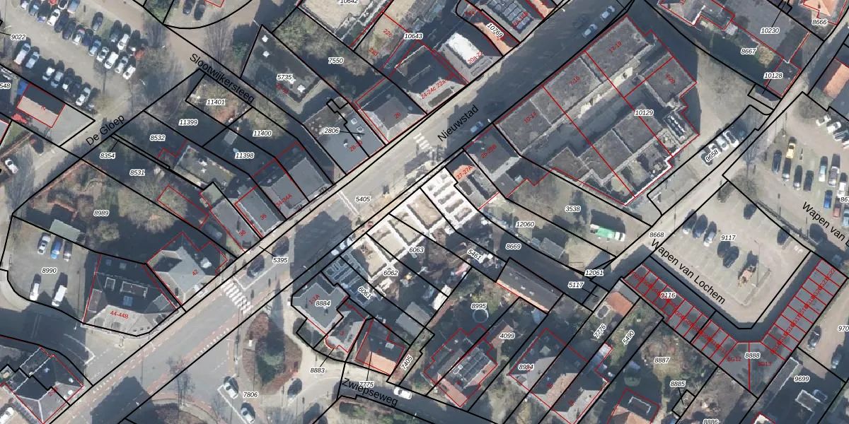 Het adres is gelegen op perceel 5461 in de sectie B en de kadastrale gemeente Lochem. De kadastrale aanduiding is aldus LCM00-B-5461. De gemiddelde perceelgrootte in Lochem is 6728,92 m². Dit perceel is kleiner: de perceeloppervlakte bedraagt 167 m². De grootste perceeloppervlakte in de kadastrale gemeente is 30,4 ha. De kleinste oppervlakte bedraagt 0 m². Op het perceel zijn 5 adressen aanwezig. De huidige grenzen van het perceel zijn digitaal in de Basisregistratie Kadaster (BRK) geregistreerd op 02-10-2000.