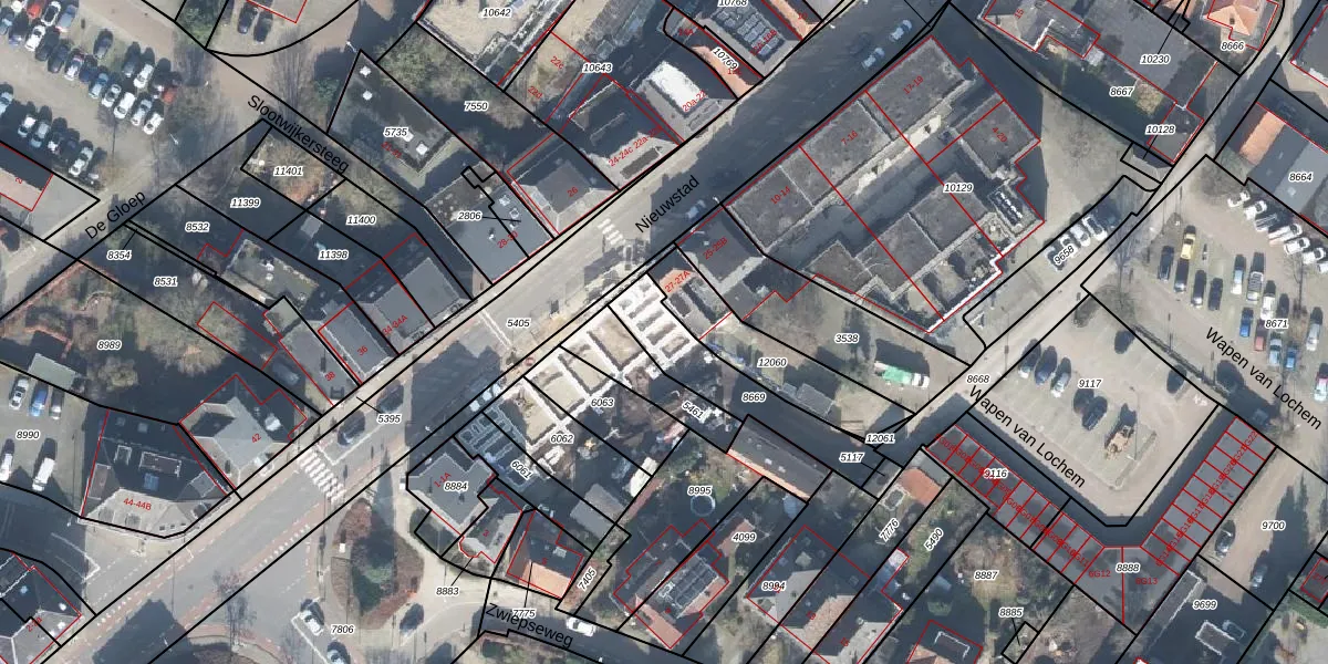 Nieuwstad 33 is gelegen op kadastraal perceel LCM00B8669. Deze kadastrale aanduiding is uniek en wordt gebruikt door het Kadaster om eigendomsrechten en andere zakelijke rechten vast te leggen. Het perceel maakt onderdeel uit van de kadastrale gemeente Lochem.
