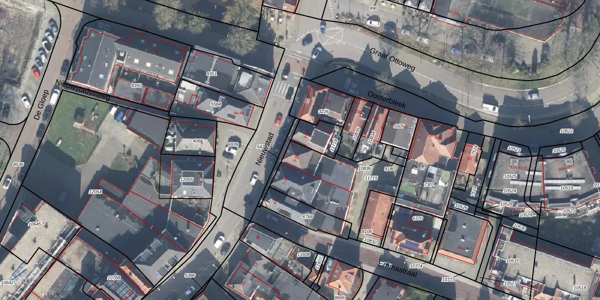 Het perceel waarop Nieuwstad 5-a staat heeft een oppervlakte van 674 m². Dit is een groot perceel. De perceeloppervlakte wordt geregistreerd door het Kadaster. Gedetailleerde informatie over de maten van dit perceel kunt u vinden in het rapport Kadastrale kaart met maatvoering van Nieuwstad 5-a.