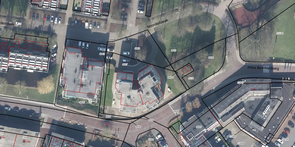 Het perceel waarop Noorderbleek 100 staat heeft een oppervlakte van 1647 m². Dit is een zeer groot perceel. De perceeloppervlakte wordt geregistreerd door het Kadaster. Gedetailleerde informatie over de maten van dit perceel kunt u vinden in het rapport Kadastrale kaart met maatvoering van Noorderbleek 100.