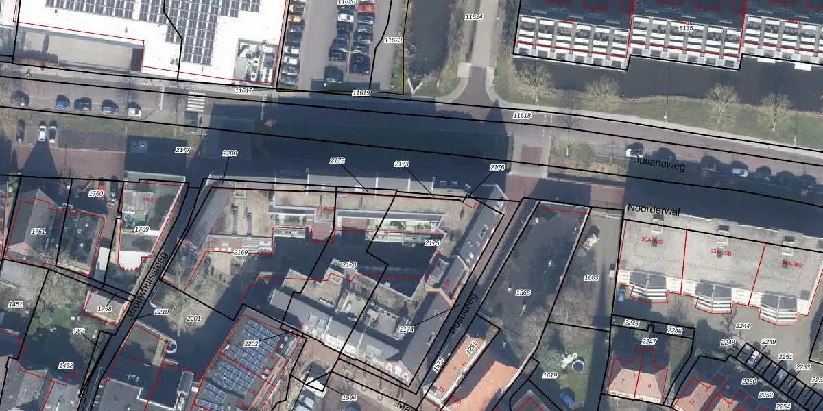 Het perceel waarop Noorderwal 22-a staat heeft een oppervlakte van 962 m². Dit is een groot perceel. De perceeloppervlakte wordt geregistreerd door het Kadaster. Gedetailleerde informatie over de maten van dit perceel kunt u vinden in het rapport Kadastrale kaart met maatvoering van Noorderwal 22-a.