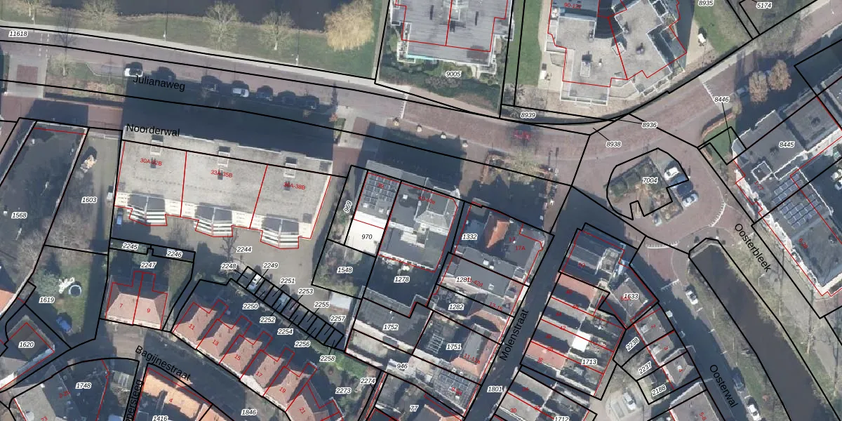 Het perceel waarop Noorderwal 40-d staat heeft een oppervlakte van 448 m². Dit is een groot perceel. De perceeloppervlakte wordt geregistreerd door het Kadaster. Gedetailleerde informatie over de maten van dit perceel kunt u vinden in het rapport Kadastrale kaart met maatvoering van Noorderwal 40-d.