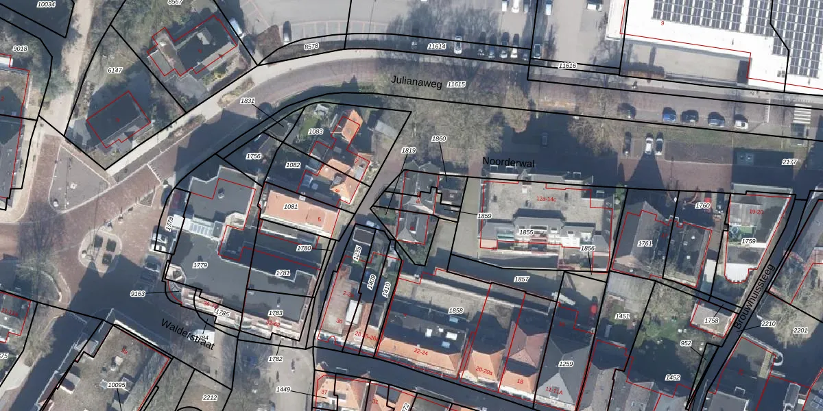 Het perceel waarop Noorderwal 9 staat heeft een oppervlakte van 80 m². Dit is een klein perceel. De perceeloppervlakte wordt geregistreerd door het Kadaster. Gedetailleerde informatie over de maten van dit perceel kunt u vinden in het rapport Kadastrale kaart met maatvoering van Noorderwal 9.