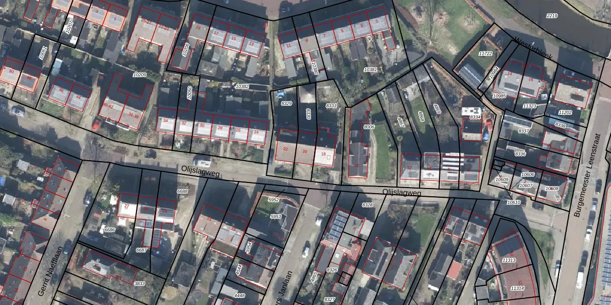 Gebruik de zoekbalk of klik op een perceel voor informatie over de adressen binnen dit perceel.