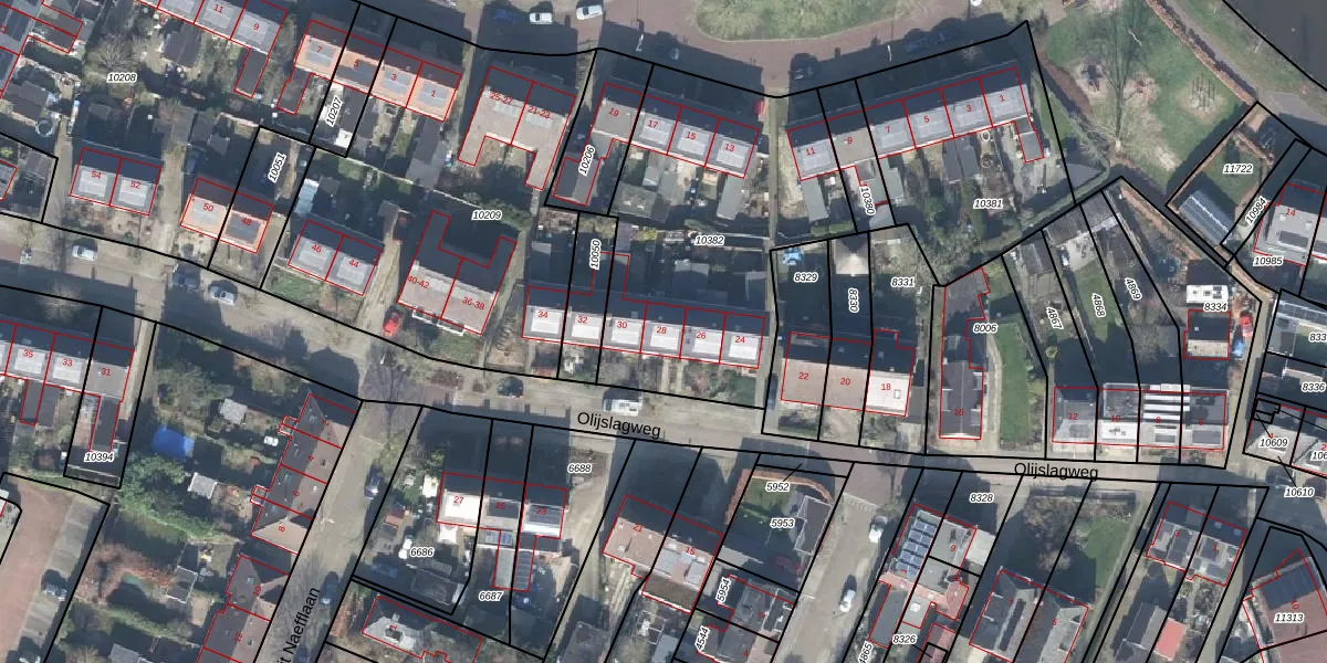 Het perceel waarop Olijslagweg 28 staat heeft een oppervlakte van 1371 m². Dit is een zeer groot perceel. De perceeloppervlakte wordt geregistreerd door het Kadaster. Gedetailleerde informatie over de maten van dit perceel kunt u vinden in het rapport Kadastrale kaart met maatvoering van Olijslagweg 28.