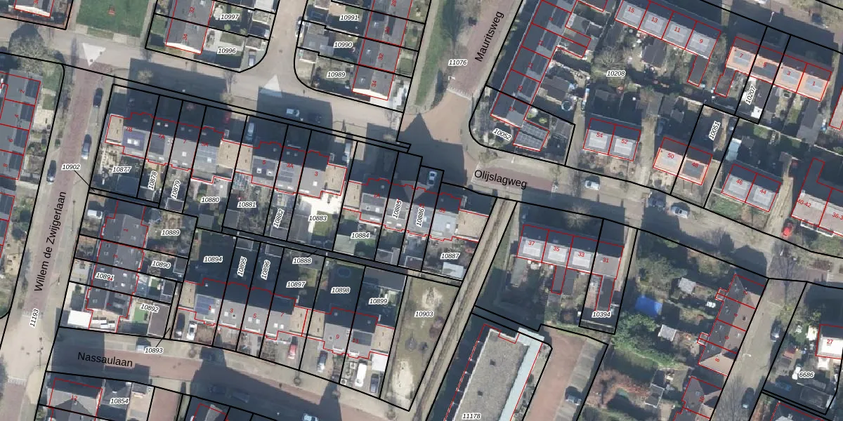 Gebruik de zoekbalk of klik op een perceel voor informatie over de adressen binnen dit perceel.