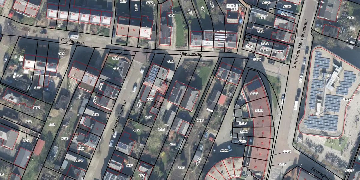 Gebruik de zoekbalk of klik op een perceel voor informatie over de adressen binnen dit perceel.
