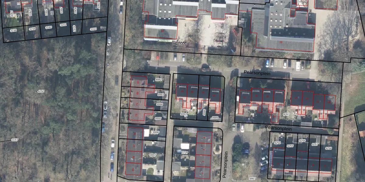 Het perceel waarop Pearsonplein 21 staat heeft een oppervlakte van 357 m². Dit is een groot perceel. De perceeloppervlakte wordt geregistreerd door het Kadaster. Gedetailleerde informatie over de maten van dit perceel kunt u vinden in het rapport Kadastrale kaart met maatvoering van Pearsonplein 21.