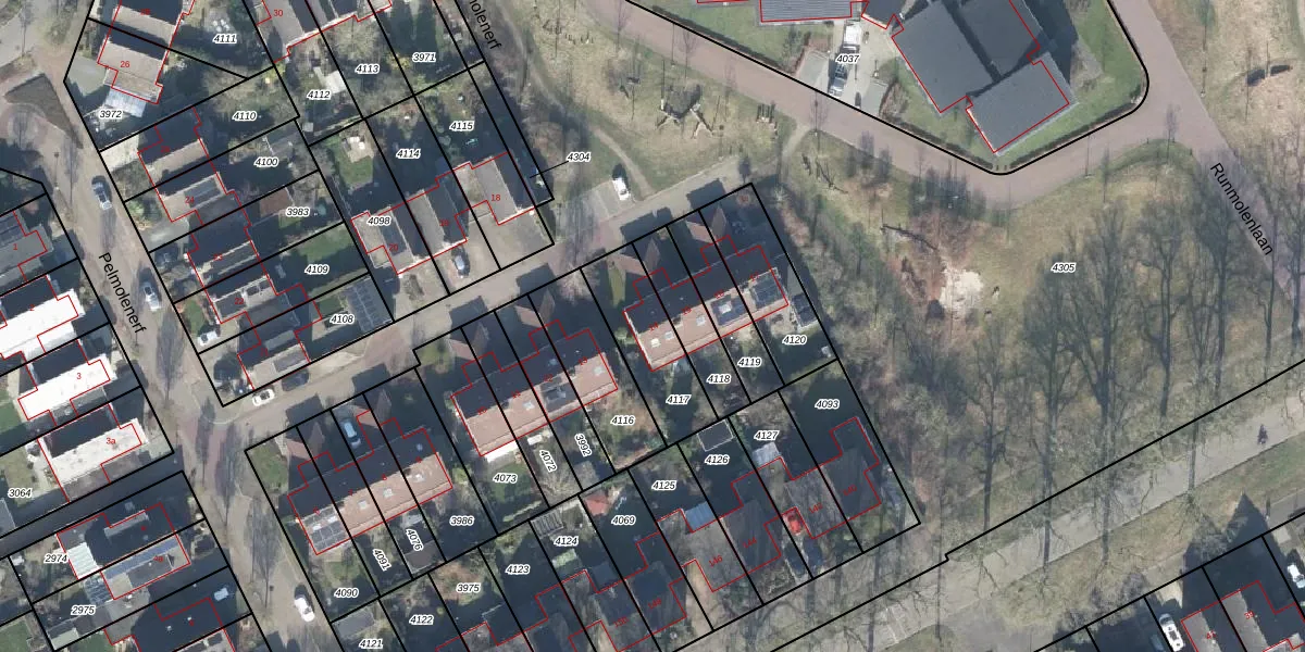 Gebruik de zoekbalk of klik op een perceel voor informatie over de adressen binnen dit perceel.