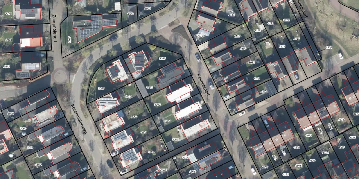 Gebruik de zoekbalk of klik op een perceel voor informatie over de adressen binnen dit perceel.