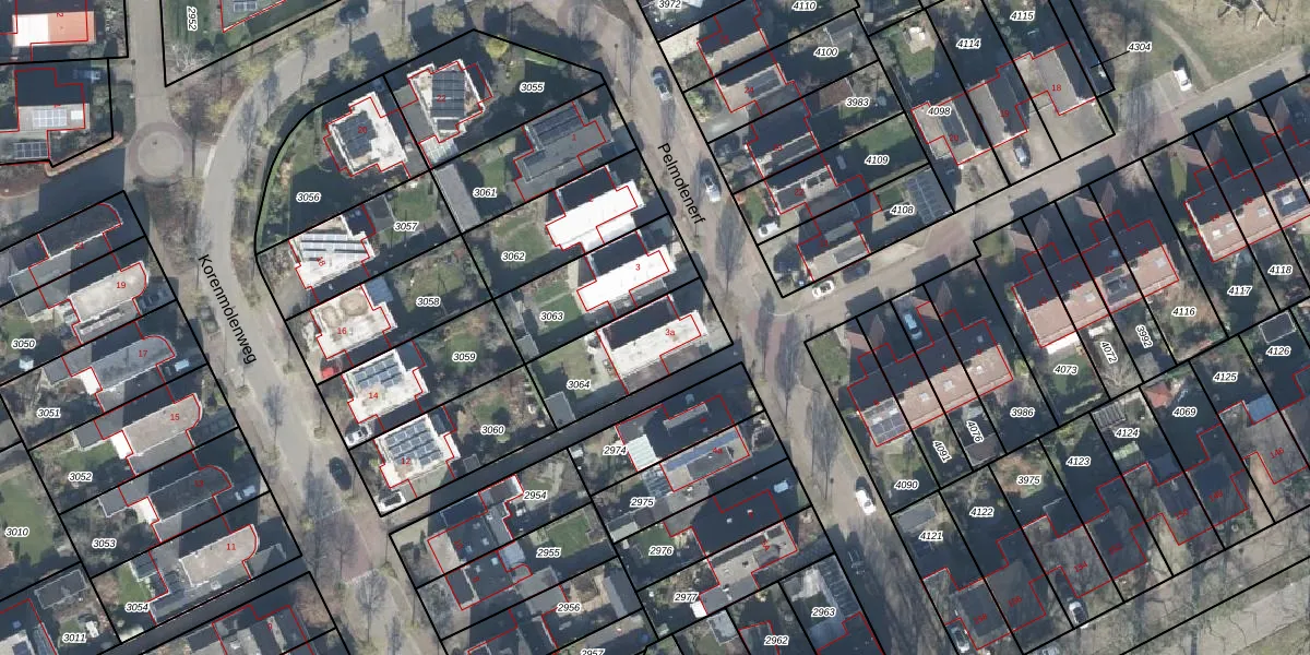 Gebruik de zoekbalk of klik op een perceel voor informatie over de adressen binnen dit perceel.