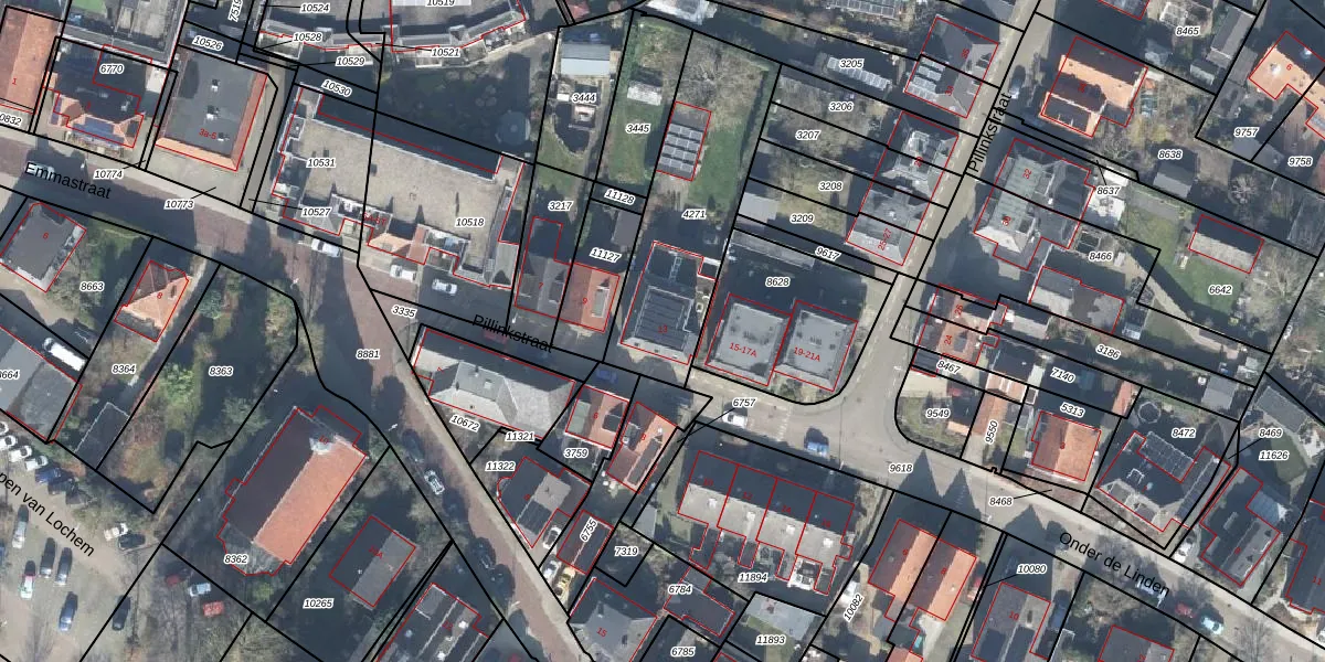 Pillinkstraat 13 is gelegen op kadastraal perceel LCM00B4271. Deze kadastrale aanduiding is uniek en wordt gebruikt door het Kadaster om eigendomsrechten en andere zakelijke rechten vast te leggen. Het perceel maakt onderdeel uit van de kadastrale gemeente Lochem.