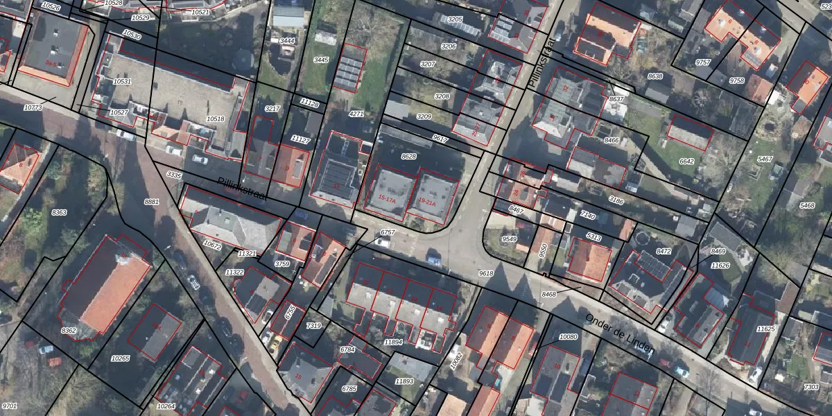 Het perceel waarop Pillinkstraat 19 staat heeft een oppervlakte van 530 m². Dit is een groot perceel. De perceeloppervlakte wordt geregistreerd door het Kadaster. Gedetailleerde informatie over de maten van dit perceel kunt u vinden in het rapport Kadastrale kaart met maatvoering van Pillinkstraat 19.