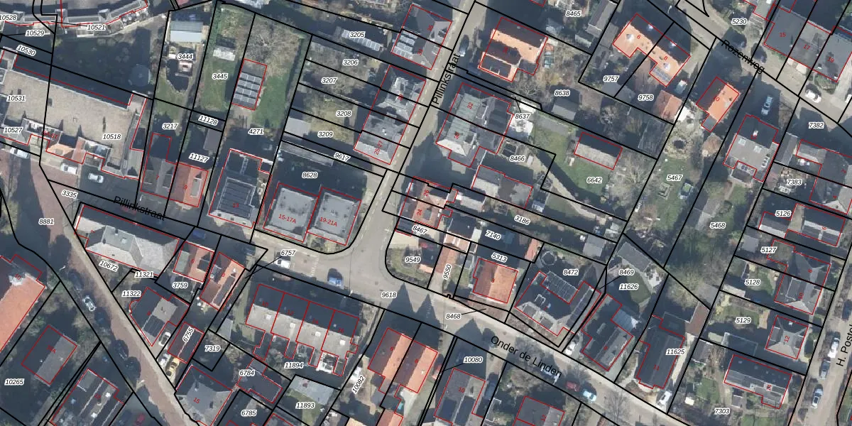 Gebruik de zoekbalk of klik op een perceel voor informatie over de adressen binnen dit perceel.