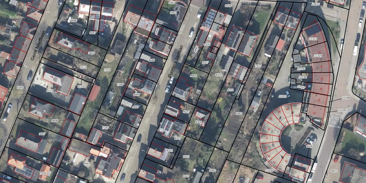 Poorters Janlaan 7 is gelegen op kadastraal perceel LCM00B4864. Deze kadastrale aanduiding is uniek en wordt gebruikt door het Kadaster om eigendomsrechten en andere zakelijke rechten vast te leggen. Het perceel maakt onderdeel uit van de kadastrale gemeente Lochem.