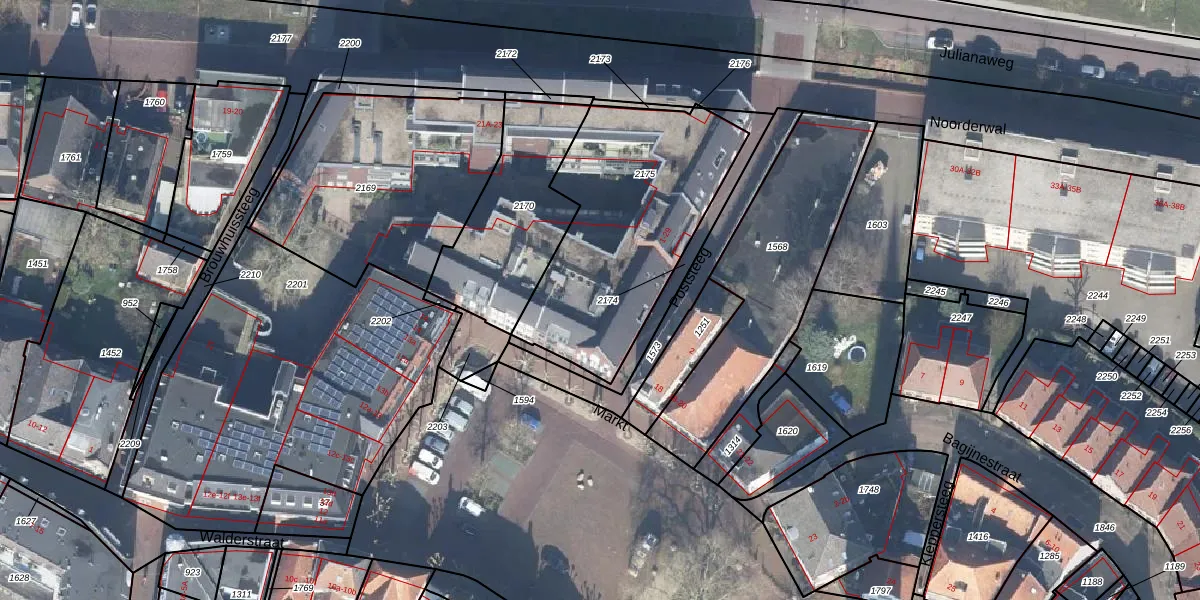 Het perceel waarop Poststeeg 9 staat heeft een oppervlakte van 962 m². Dit is een groot perceel. De perceeloppervlakte wordt geregistreerd door het Kadaster. Gedetailleerde informatie over de maten van dit perceel kunt u vinden in het rapport Kadastrale kaart met maatvoering van Poststeeg 9.