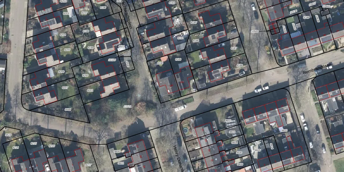 Gebruik de zoekbalk of klik op een perceel voor informatie over de adressen binnen dit perceel.