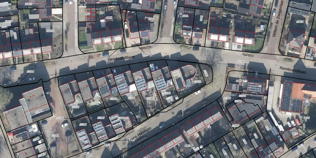Gebruik de zoekbalk of klik op een perceel voor informatie over de adressen binnen dit perceel.