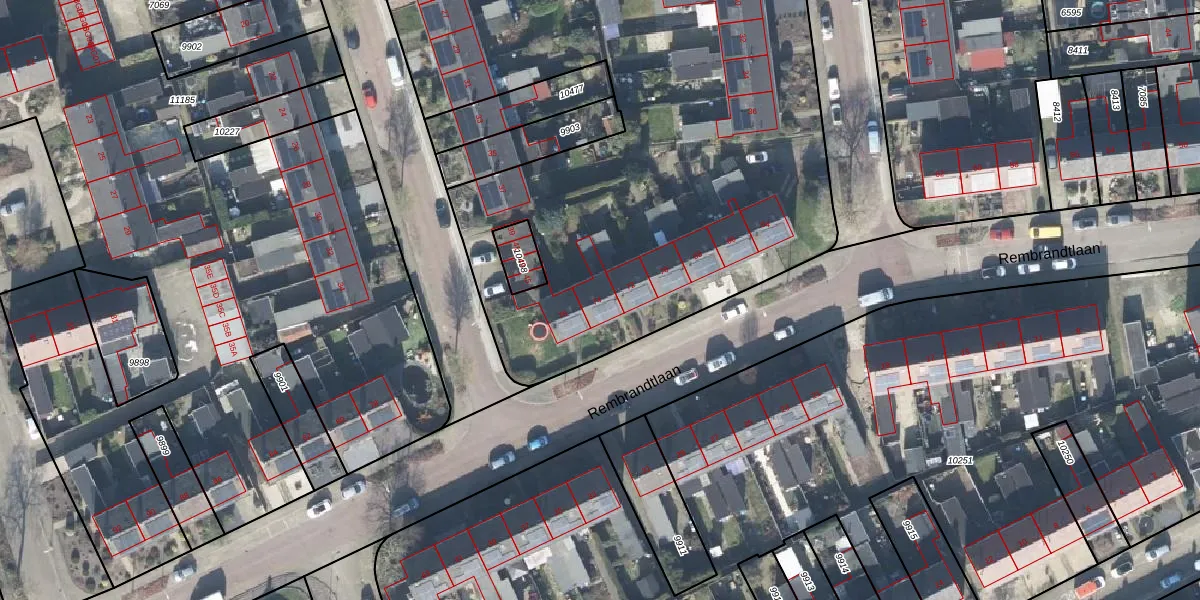 Het perceel waarop Rembrandtlaan 74 staat heeft een oppervlakte van 6791 m². Dit is een zeer groot perceel. De perceeloppervlakte wordt geregistreerd door het Kadaster. Gedetailleerde informatie over de maten van dit perceel kunt u vinden in het rapport Kadastrale kaart met maatvoering van Rembrandtlaan 74.