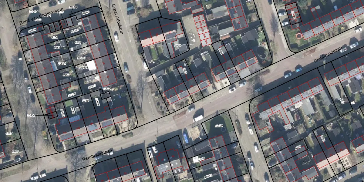 Het perceel waarop Rembrandtlaan 90 staat heeft een oppervlakte van 6123 m². Dit is een zeer groot perceel. De perceeloppervlakte wordt geregistreerd door het Kadaster. Gedetailleerde informatie over de maten van dit perceel kunt u vinden in het rapport Kadastrale kaart met maatvoering van Rembrandtlaan 90.