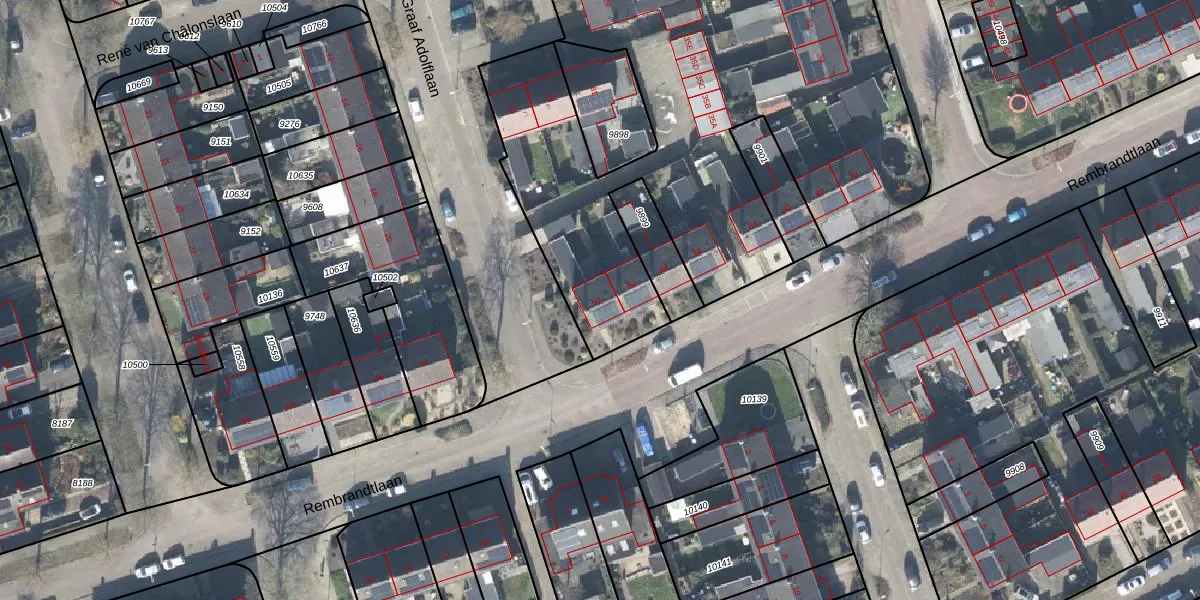Het perceel waarop Rembrandtlaan 92 staat heeft een oppervlakte van 6123 m². Dit is een zeer groot perceel. De perceeloppervlakte wordt geregistreerd door het Kadaster. Gedetailleerde informatie over de maten van dit perceel kunt u vinden in het rapport Kadastrale kaart met maatvoering van Rembrandtlaan 92.