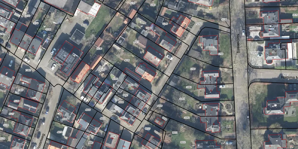 Gebruik de zoekbalk of klik op een perceel voor informatie over de adressen binnen dit perceel.