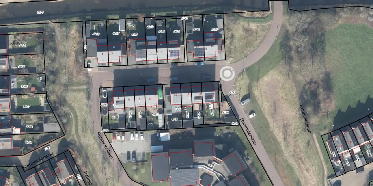 Runmolenlaan 14 is gelegen op kadastraal perceel LCM00E4029. Deze kadastrale aanduiding is uniek en wordt gebruikt door het Kadaster om eigendomsrechten en andere zakelijke rechten vast te leggen. Het perceel maakt onderdeel uit van de kadastrale gemeente Lochem.