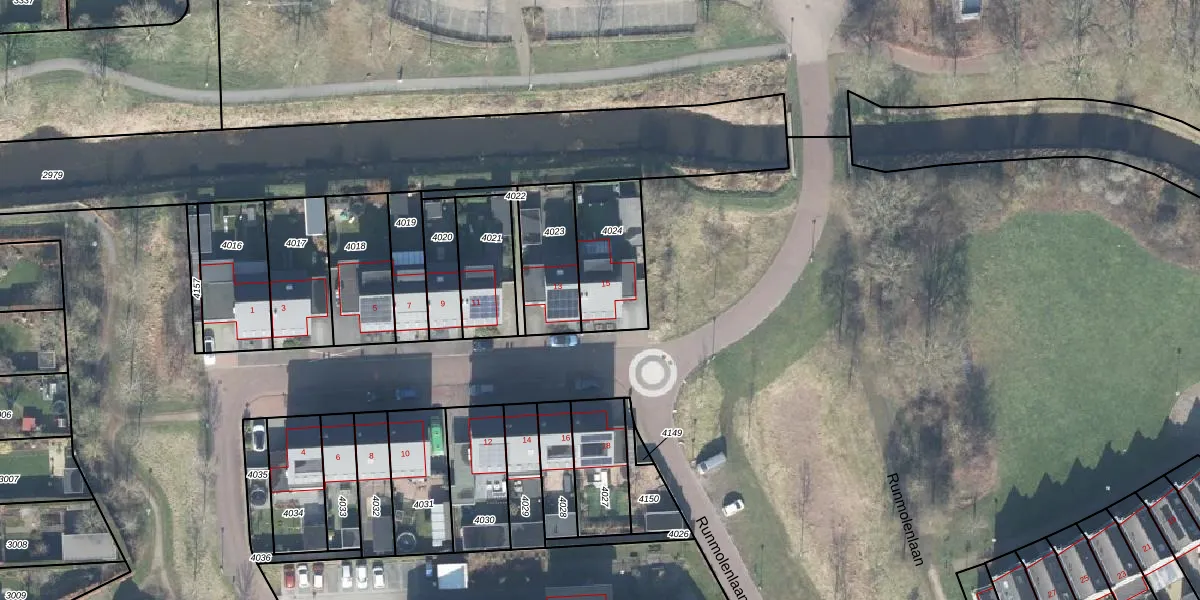 Het perceel waarop Runmolenlaan 15 staat heeft een oppervlakte van 279 m². Dit is een middelgroot perceel. De perceeloppervlakte wordt geregistreerd door het Kadaster. Gedetailleerde informatie over de maten van dit perceel kunt u vinden in het rapport Kadastrale kaart met maatvoering van Runmolenlaan 15.