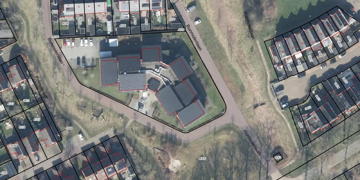 Het perceel waarop Runmolenlaan 2-K106 staat heeft een oppervlakte van 3305 m². Dit is een zeer groot perceel. De perceeloppervlakte wordt geregistreerd door het Kadaster. Gedetailleerde informatie over de maten van dit perceel kunt u vinden in het rapport Kadastrale kaart met maatvoering van Runmolenlaan 2-K106.