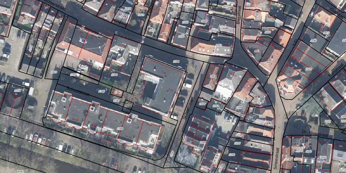 Het perceel waarop Schoolstraat 16 staat heeft een oppervlakte van 1113 m². Dit is een zeer groot perceel. De perceeloppervlakte wordt geregistreerd door het Kadaster. Gedetailleerde informatie over de maten van dit perceel kunt u vinden in het rapport Kadastrale kaart met maatvoering van Schoolstraat 16.