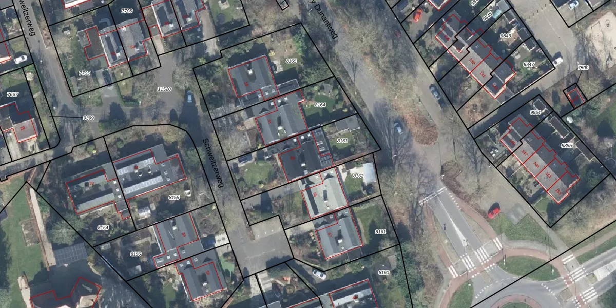 Het perceel waarop Schweitzerweg 63 staat heeft een oppervlakte van 643 m². Dit is een groot perceel. De perceeloppervlakte wordt geregistreerd door het Kadaster. Gedetailleerde informatie over de maten van dit perceel kunt u vinden in het rapport Kadastrale kaart met maatvoering van Schweitzerweg 63.