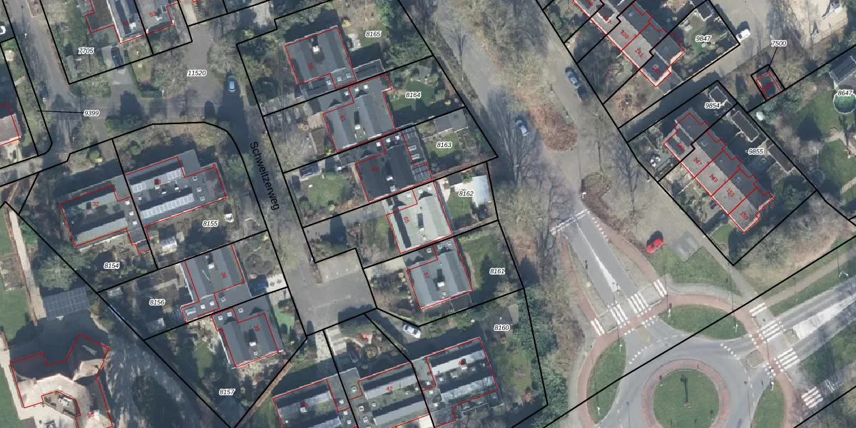 Gebruik de zoekbalk of klik op een perceel voor informatie over de adressen binnen dit perceel.