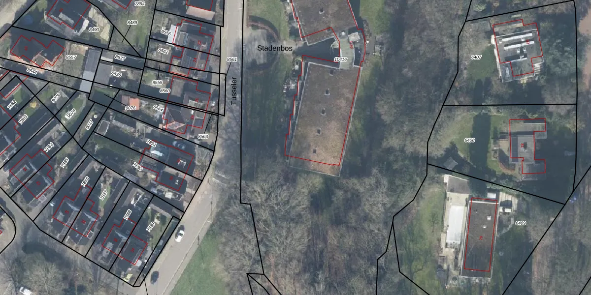 Het perceel waarop Stadenbos 15 staat heeft een oppervlakte van 1,0 ha. Dit is een zeer groot perceel. De perceeloppervlakte wordt geregistreerd door het Kadaster. Gedetailleerde informatie over de maten van dit perceel kunt u vinden in het rapport Kadastrale kaart met maatvoering van Stadenbos 15.