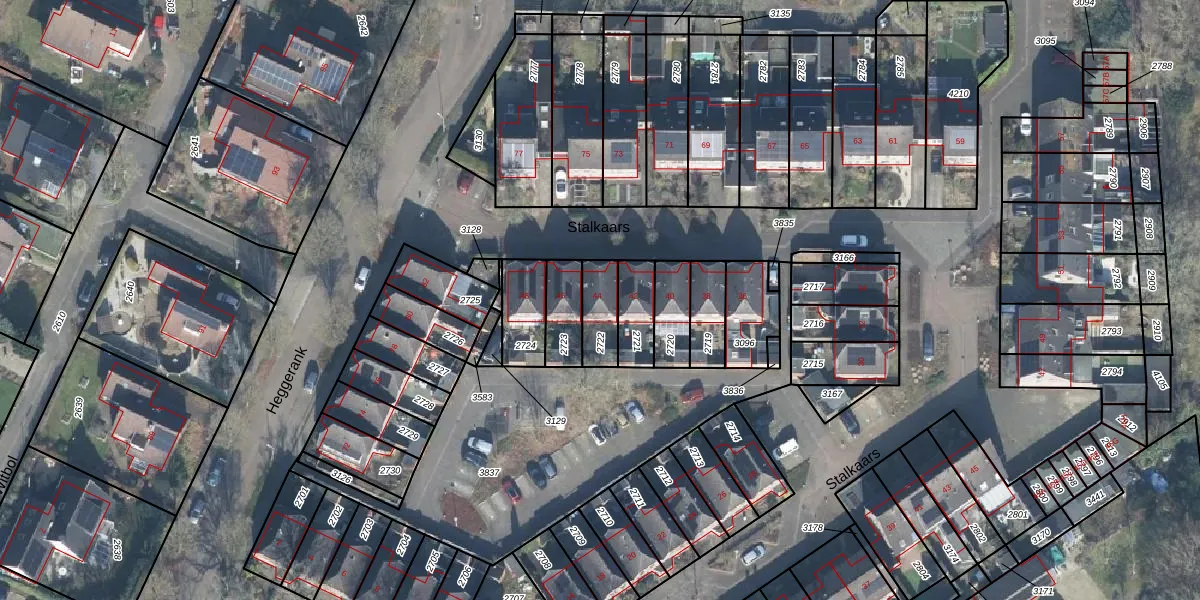 Gebruik de zoekbalk of klik op een perceel voor informatie over de adressen binnen dit perceel.