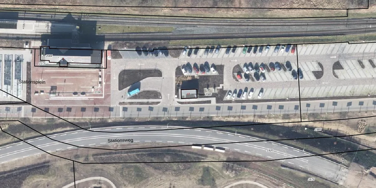 Het perceel waarop Stationsplein 1-t staat heeft een oppervlakte van 40 m². Dit is een klein perceel. De perceeloppervlakte wordt geregistreerd door het Kadaster. Gedetailleerde informatie over de maten van dit perceel kunt u vinden in het rapport Kadastrale kaart met maatvoering van Stationsplein 1-t.