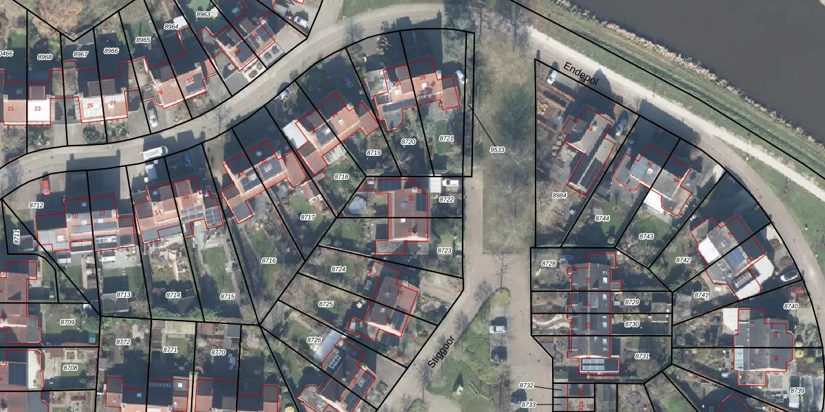 Gebruik de zoekbalk of klik op een perceel voor informatie over de adressen binnen dit perceel.