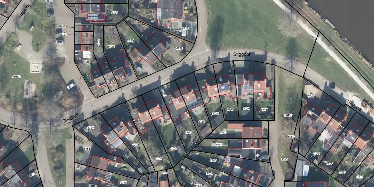 Gebruik de zoekbalk of klik op een perceel voor informatie over de adressen binnen dit perceel.