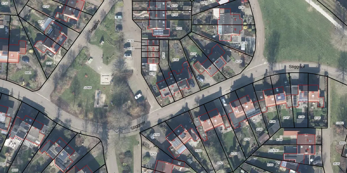 Het perceel waarop Stiggoor 35 staat heeft een oppervlakte van 231 m². Dit is een middelgroot perceel. De perceeloppervlakte wordt geregistreerd door het Kadaster. Gedetailleerde informatie over de maten van dit perceel kunt u vinden in het rapport Kadastrale kaart met maatvoering van Stiggoor 35.
