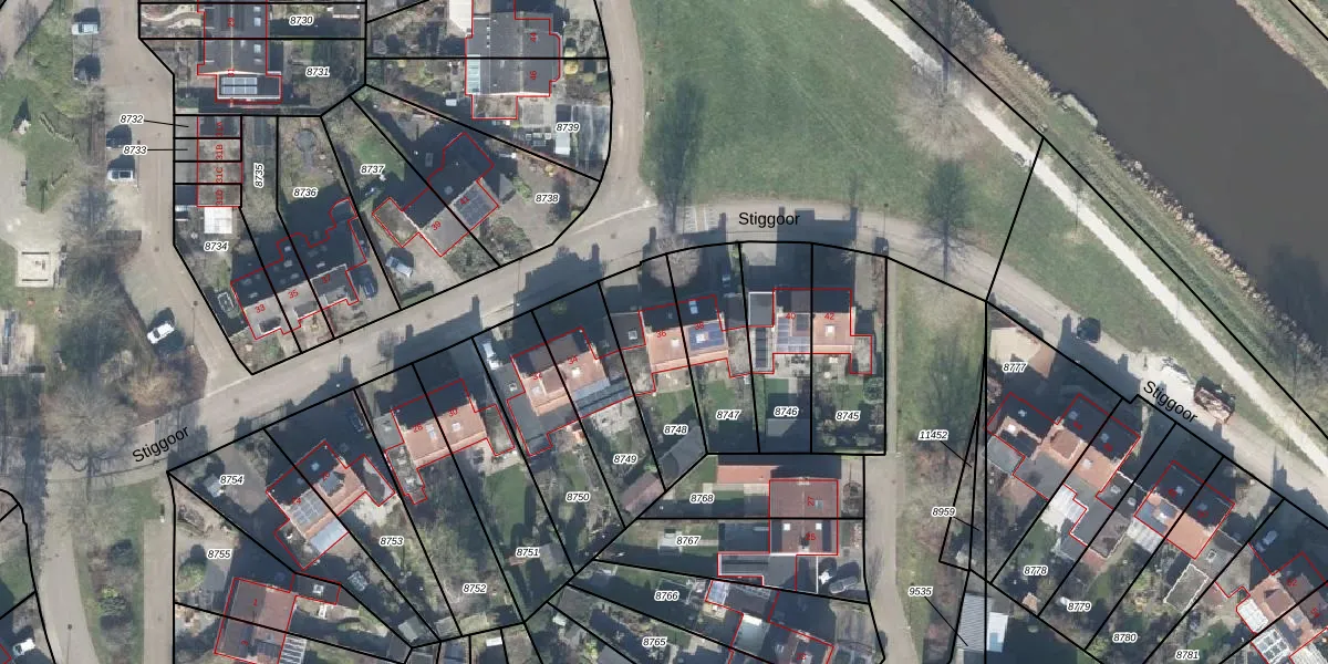 Het perceel waarop Stiggoor 36 staat heeft een oppervlakte van 297 m². Dit is een middelgroot perceel. De perceeloppervlakte wordt geregistreerd door het Kadaster. Gedetailleerde informatie over de maten van dit perceel kunt u vinden in het rapport Kadastrale kaart met maatvoering van Stiggoor 36.