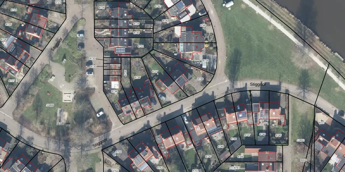 Het perceel waarop Stiggoor 39 staat heeft een oppervlakte van 353 m². Dit is een groot perceel. De perceeloppervlakte wordt geregistreerd door het Kadaster. Gedetailleerde informatie over de maten van dit perceel kunt u vinden in het rapport Kadastrale kaart met maatvoering van Stiggoor 39.