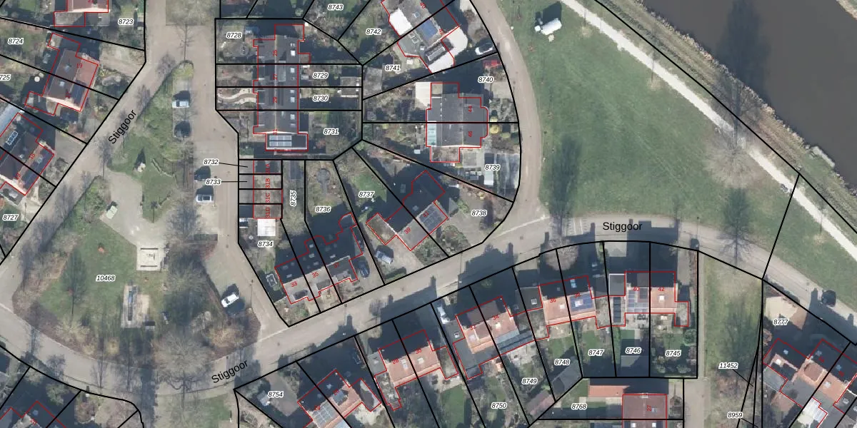 Het perceel waarop Stiggoor 41 staat heeft een oppervlakte van 416 m². Dit is een groot perceel. De perceeloppervlakte wordt geregistreerd door het Kadaster. Gedetailleerde informatie over de maten van dit perceel kunt u vinden in het rapport Kadastrale kaart met maatvoering van Stiggoor 41.