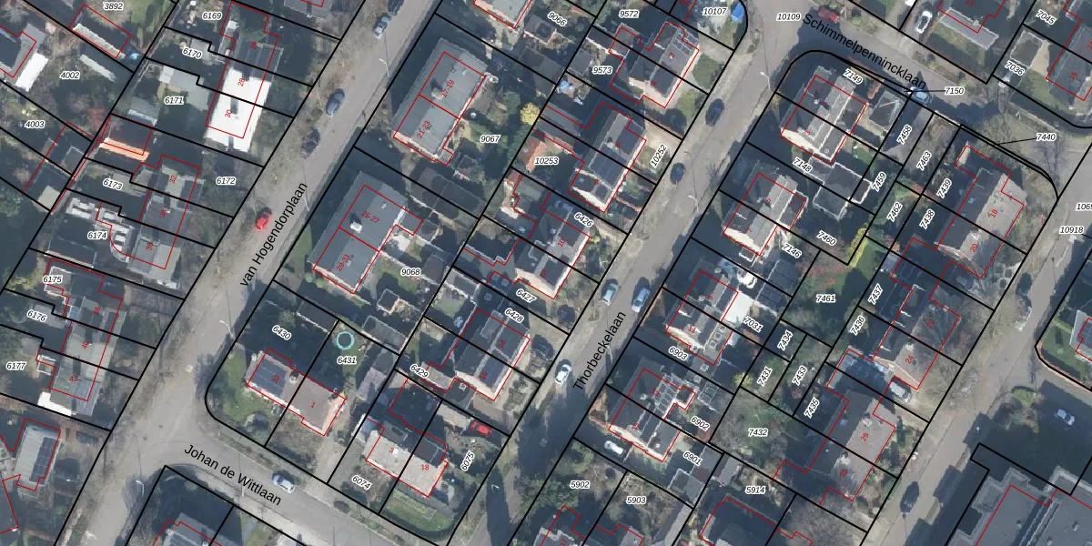 Gebruik de zoekbalk of klik op een perceel voor informatie over de adressen binnen dit perceel.