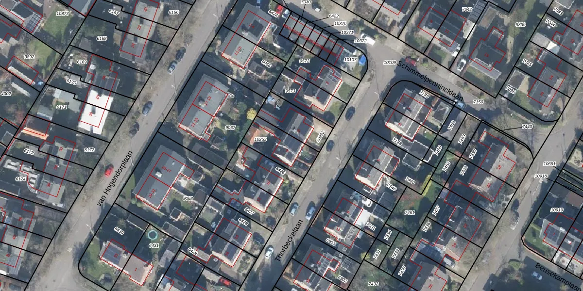 Gebruik de zoekbalk of klik op een perceel voor informatie over de adressen binnen dit perceel.