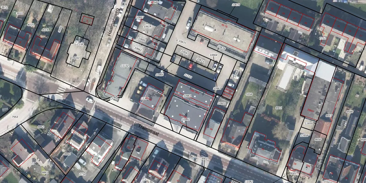 Het perceel waarop Tramstraat 36-e staat heeft een oppervlakte van 676 m². Dit is een groot perceel. De perceeloppervlakte wordt geregistreerd door het Kadaster. Gedetailleerde informatie over de maten van dit perceel kunt u vinden in het rapport Kadastrale kaart met maatvoering van Tramstraat 36-e.