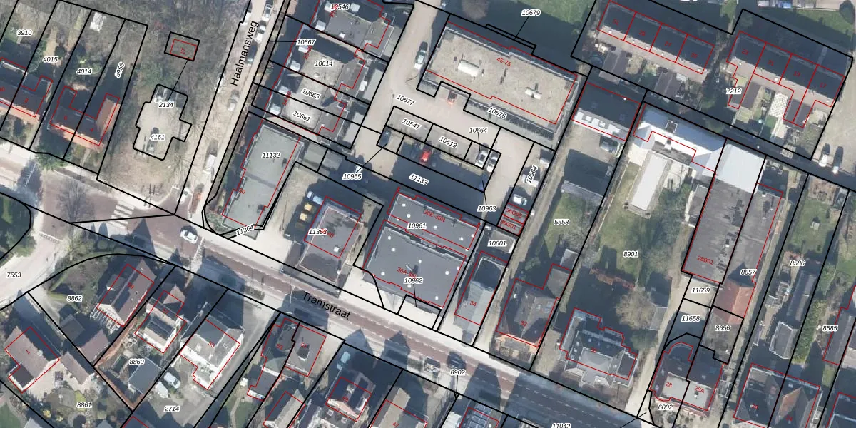 Het perceel waarop Tramstraat 36-n staat heeft een oppervlakte van 676 m². Dit is een groot perceel. De perceeloppervlakte wordt geregistreerd door het Kadaster. Gedetailleerde informatie over de maten van dit perceel kunt u vinden in het rapport Kadastrale kaart met maatvoering van Tramstraat 36-n.